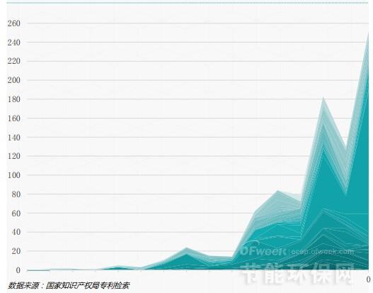 但另一方面,从固废处理企业的研发投入及专利申请增长量情况来看,企业主体正在向扛起技术创新大旗的目标努力。下图是对包括新三板企业在内的65家固废处理上市公司年专利申请量的统计,可以发现,企业的年专利申请量呈现跨越式增长。可以说,市场化的企业主体在固废处理领域的技术创新方面拥有愈加重要的地位。