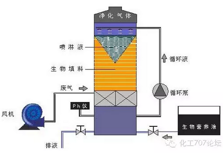 脱臭原理:原理同生物滤池式类似,不过使用的滤料是诸如聚丙烯小球、陶瓷、木炭、塑料等不能提供营养物的惰性材料。