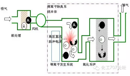 脱臭原理:介质阻挡放电过程中,等离子体内部产生富含极高化学活性的粒子,如电子、离子、自由基和激发态分子等。废气中的污染物质与这些具有较高能量的活性基团发生反应,最终转化为CO2和H2O等物质,从而达到净化废气的目的。