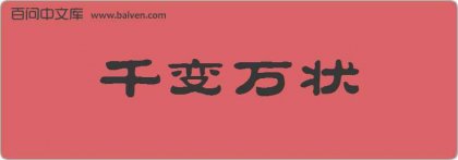1、前往菁盛中学的小面包车上,浩龙大哥哥给杼蕴和亿果讲了“千变万状”的典故。 2、千变万状,不可殚记。见唐·白居易《庐山草堂记》。 3、成语千变万状出自汉