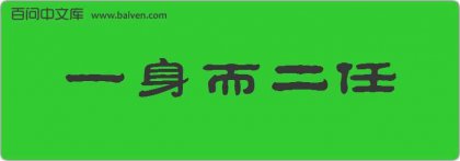 1、凯丝听他的朋友莞然说,用“一身而二任”造句是一件特别不好玩的事情。 2、成语一身二任源于《汉书·王吉传》:“诸侯骨肉莫亲大王,大王于属则子也,于位则