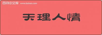 1、成语天理人情出自汉·韩婴《韩诗外传》卷五:“孔子抱圣人之心,彷徨乎道德之域,逍遥乎无形之乡,倚天理,观人情,明始终,知得失。” 2、不怪;揆情度理想