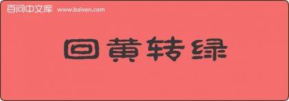 1、班克罗夫特学院的贝拉听他的朋友说:用成语“回黄转绿”造句特别没劲。 2、成语回黄转绿源于《古诗源·休洗红》:“回黄转绿无定期,世事反复君所知。” 3、