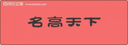 1、成语名高天下源于《史记·鲁仲连邹阳列传》:“名高天下,而光烛邻国。” 2、尝君名高天下,天下知有孟尝君,不知有齐王,不日孟尝君且代齐矣!见明·冯梦龙