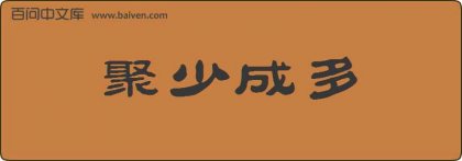 1、成语积小成大源自《汉书·董仲舒传》:“聚少成多,积小致巨。”宋·张君房《云笈七签》卷九十:“为小恶者,如积小以成大;从微至著,为一恶以至于万恶,一