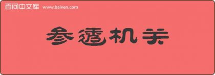 1、她已经参透机关,就不再说什么了。 2、那知孙寡妇已先参透机关,将个假货送来,刘妈妈反做了:周郎妙计高天下,赔了夫人又折兵。 3、前往张家口市第十六中学