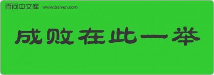 1、这桩事,任大责重,方才一口气许了公婆,成败在此一举。见清·文康《儿女英雄传》第二十六回。 2、成语成败在此一举源于《晋书·苻坚载记上》:“成败之机,