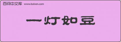 1、这时他察觉处身于一间斗室之中,桌上一灯如豆,发出淡淡黄光,自己睡在榻上,身上盖了棉被。见金庸《笑傲江湖》第十八回。 2、急闭窗,携酒归房.一灯如豆,