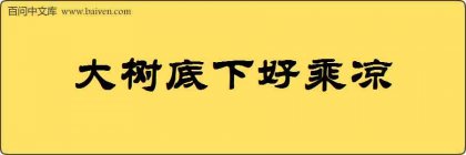 1、成语大树底下好乘凉出自元·无名氏《刘弘嫁婢》第一折:“每日则是吃他家的,便好道这大树底下好乘凉。” 2、安徽省淮南矿业集团公司第二中学的上官涛听法国