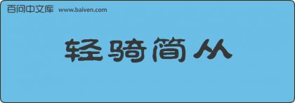 1、暂且不带家眷,我一个人带上几个家人,轻骑简从的先去看看路数。见清·文康《儿女英雄传》第二回。 2、径浒正在专心地默记许浑的诗《长兴里夏日南邻避暑》,