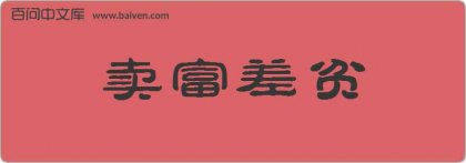 1、刚来中国的留学生奥斯汀总是觉得:用成语“卖富差贫”造句是件非常好玩的事情。 2、《清史稿·食货志》:“请饬抚臣通行两府,按田起役,毋得凭空佥报,以滋