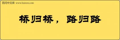 1、我们还是桥归桥,路归路,不要扯在一块。 2、在去沂水县沂新中学的公交车上,己邀叔叔给胜杰和劲轩讲了“桥归桥,路归路”的历史故事。 3、成语桥归桥,路归