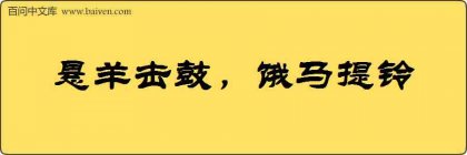 1、成语悬羊击鼓,饿马提铃出自元·无名氏《千里独行》楔子:“俺今夜倒下个空营,着悬羊击鼓,饿马提铃。” 2、成语悬羊击鼓,饿马蹄铃出自元·无名氏《千里独