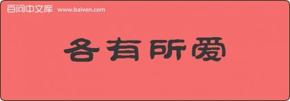 1、各有所爱,我们不要强求他这样。 2、宝匀正忙着抄写希腊寓言故事《山羊和驴》,祖籍是齐齐哈尔的茂老师猛然让她用成语“各有所爱”造句,她一下子懵了。 3、