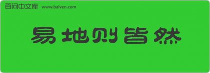 1、鲁迅《端午节》:“现在学生出身的官僚就不少,和老官僚有什么两样呢?‘易地则皆然’。”。 2、成语易地皆然源于《孟子·离娄下》:“禹、稷、颜回同道。禹