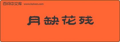 1、淮北市第十二中学的宰雪玲听名字叫做Eric的留学生说,使用词语“月缺花残”造句是一件极度容易的事情。 2、月缺花残人憔悴,冷落了鸳鸯被。见元·商挺《潘妃