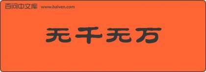 1、成语无千无万出自明·施耐庵《水浒传》第十七回:“杨提辖,且住!你听我说:我在东京太师府里做奶公时,门下官军,见了无千无万,都向着我喏喏连声。” 2、