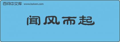 1、成语闻风而起来自宋·陈亮《祭赵尉母夫人文》:“登堂莫及,闻风而起。” 2、别处的人一定也有闻风而起的,这便是救中国的独一无二法门了。见梁启超《新中国