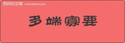 1、成语多端寡要源于《三国志·魏书·郭嘉传》:“袁公徒欲效周公之下士,而未知用人之机。多端寡要,好谋无决。” 2、广东云浮市第三中学的殷施华听欧洲留学生