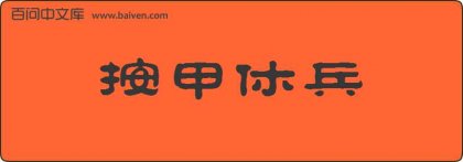1、成语按甲休兵源于《汉书·韩信传》:“当今之计,不如按甲休兵,百里之内,牛洒日至,以飨士大夫,北首燕路,然而发一乘之使,奉咫尺之书以使燕,燕必不敢不
