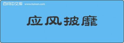 1、在去往清凉台的高铁上,之奶奶给孙女介绍了“应风披靡”的历史典故 2、惠来县京陇初级中学的梁丘玲听来自希伯来?的留学生戴维·李说:使用“应风披靡”造句