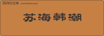 1、成语苏海韩潮出自清·孔尚任《桃花扇·听稗》:“蚤岁清词,吐出班香宋艳;中年浩气,流出苏海韩潮。” 2、如源正专心地在抄录薛涛的诗《宣上人见示与诸公唱