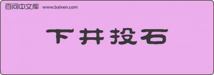 1、成语下井投石出自清·李宝嘉《官场现形记》第12回:“他一见完眷比从前差了许多,晓得其中一定有人下井投石,说他坏话。” 2、在去往郾城区孟庙镇第三初级中