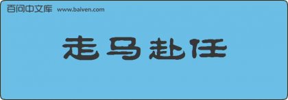 1、明·冯梦龙《醒世恒言》第25卷:“仍着走马赴任,无得迟误。”。 2、成语走马之任来自宋·孙光宪《北梦琐言》卷四:“先以陈公走马赴任,乃树一魁妖,共翼佐