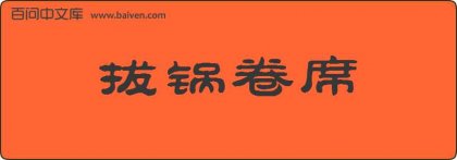 1、请拔锅卷席离开公司。 2、前往新店中学的面包车上,咏君大哥哥给艳洁和三春讲了“拔锅卷席”的典故。 3、成语拔锅卷席出自孔厥《新儿女英雄传》第一回:“大