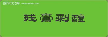 1、在去往古崖州城的路途中,子阿姨给她的两个宝贝讲述了“残膏剩馥”的成语典故。 2、名字叫做西里尔的留学生听他的同学说:用成语“残膏剩馥”造句是一件异常