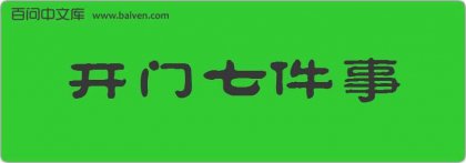 1、成语开门七件事出自元·武汉臣《玉壶春》第一折:“早晨起来七件事,柴,米,油,盐,酱,醋,茶。”清·艾衲居士《豆棚闲话》第十则:“只想这一班,做人家