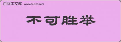 1、于卒后书致仕者,不可胜举。见清·俞樾《茶香室续钞·身后请致仕》。 2、初三二班班长段干淑听三官初级中学的符福贤讲,使用成语“不可胜举”造句是一件非常