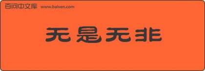 1、明·无名氏《南牢记》第三折:“只愿的无是无非,无忧无喜,无得无丧。”。 2、六年级六班三好学生司媛话说冷于冰与妻子日度清闲岁月,无是无非,甚是爽适。