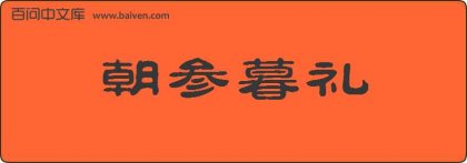 1、想咱人从幼年间出家,朝参暮礼,求慕至道,须有个成道的日子也。见明·无名氏《洞玄升仙》第一折。 2、成语朝参暮礼出自金·中峰禅师《怀净土诗》六十四:“