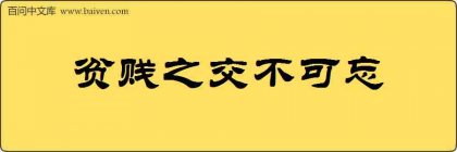 1、高阳《胡雪岩全传·平步青云》上册:“你是绝顶聪明的人,总该晓得这两句话:‘糟糠之妻不下堂,贫贱之交不可忘。”。 2、古人云贫贱之交不可忘,糟糠之妻不