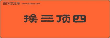 1、成语挨三顶五出自明·罗贯中《平妖传》:“众人挨三顶四,簇拥将来,一个个伸出手来,求太医看脉。” 2、成语挨三顶四出自明·冯梦龙《平妖传》:“众人挨三