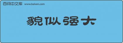 1、在他们的心目中,任何貌似强大的侵略者,都只不过是一群徒有虚表的行尸走肉而已。见峻青《不尽巨涛滚滚来》。 2、不知道是不是这个原因,貌似强大的物质环境
