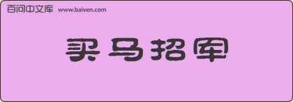 1、刚来中国的留学生Kenyon听朋友讲:用“买马招军”造句是件相当没劲的任务。 2、明·施耐庵《水浒传》第105回:“分头于房山寨及各处,立竖招军旗号,买马招