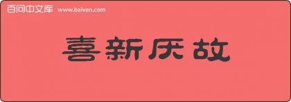1、张子诚自从讨了如夫人以后,喜新厌故。见清·彭养鸥《《黑籍冤魂》第二十二回。 2、哈尔滨市剑桥三中的长孙听名字叫做罗伊的留学生说,应用成语“喜新厌故”