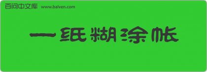 1、可怜斛律金,竟不成屋字,一纸糊涂帐,笑我亦不已。见清·赵翼《右手忽患疯痹,食指中指不能把笔,将成痼疾矣》。 2、成语一纸糊涂帐出自明·朱国桢《涌幢小