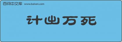 1、成语计出万死源自《宋书·武帝纪上》:“玄曰:‘不然,彼兵速锐,计出万死。若行遣水军,不足相抗,如有蹉跌,则彼气成而吾事败矣。’” 2、在去往宜阳县城