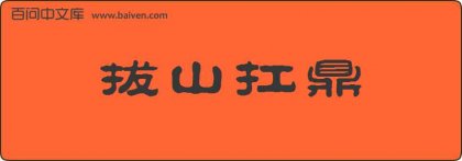 1、成语拔山扛鼎源于《史记·项羽本纪》:“力能扛鼎,才气过人。”又:“于是项王乃悲歌慷慨,自为诗曰:‘力拔山兮气盖世,时不利兮骓不逝。’” 2、洁懿正偷