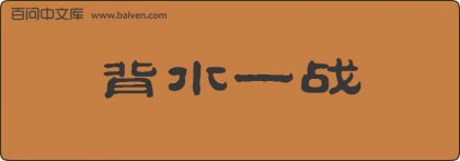 1、去双林镇莫蓉中学的小面包车上,雨晴哥哥给凿奁和浅秋讲述了“背水一战”的成语典故。 2、可惜他势单力薄,尽管自己和将士使出背水一战的努力,但因为实力相