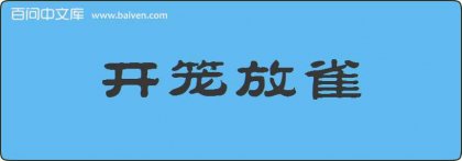 1、毛相又奸又滑,趁着人眼一错,一溜烟逃出关外,好比开笼放雀,插翅高飞。见清·雪樵主人《双凤奇缘》第十八回。 2、成语开笼放雀来自宋·孙光宪《北梦琐言》