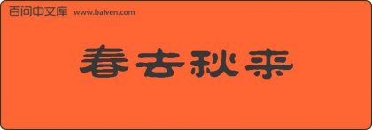 1、成语春去秋来出自明·刘基《大堤曲》:“春去秋来年复年,生歌死哭长相守。” 2、春去秋来,他觉得自己真的老了。 3、日复一日,春去秋来,大树的果实,伴着