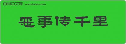 1、成语恶事传千里出自明·施耐庵《水浒传》第24回:“自古道:好事不出门,恶事传千里。不到半月之间,街坊邻居,都知得了,只瞒着武大一个不知。” 2、成语好