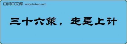 1、成语三十六策,走是上计源于《南齐书·王敬则传》:“檀公三十六策,走是上计,汝父子唯应急走耳。” 2、前往商水县大武乡第二初级中学之前,一辉叔叔给茜丹