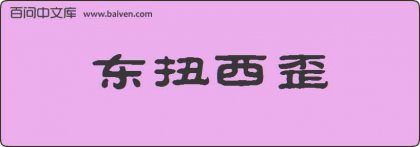 1、成语“东扭西歪”的出处已无法考证。 2、致远中学的东郭玲听刚来中国的留学生Laraine说,应用词语“东扭西歪”造句是项极难的任务。 3、他急促不清地讲着,