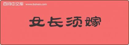 1、自古道:“男大当婚,女长须嫁。”见明·朱鼎《玉镜台记·议婚》。 2、爱尔兰的Baird听他的朋友恬悦说:用“女长须嫁”造句是件很难的事。 3、成语男大当婚