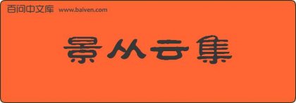 1、晨高中三年级八班劳动委员楚佑梁听北景乡北景初中的文秋影讲,使用“景从云集”造句是件很轻松的任务。 2、成语影从云集出自明·许仲琳《封神演义》第九十八